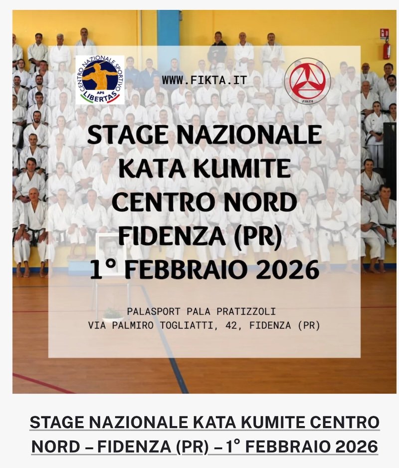 Quasi 200 cinture nere Fikta Hiroshi Shirai Karatedo asd si sono date appuntamento da tutta Italia per lo stage nazionale centro-nord di Fidenza (PR), seminario di kata e kumite.